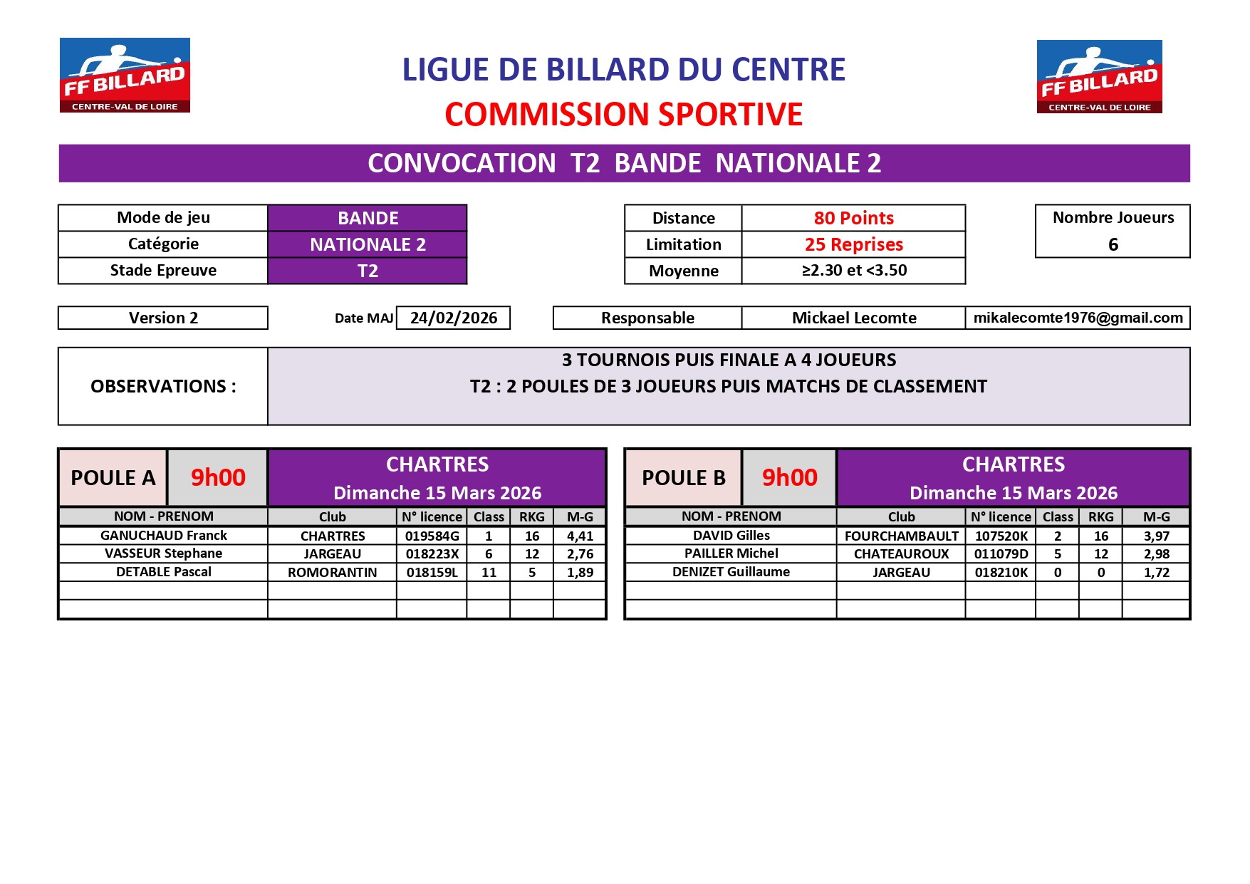 Veuillez trouver ci-joint la convocation du T2 Bande N2 du 15 mars 2026. {rsfiles path="LBCVL/Commission Sportive/Competition Individuelle/Convocations/1 Bande/Convocation T2 1 Bande N2 15-03-2026.pdf"}