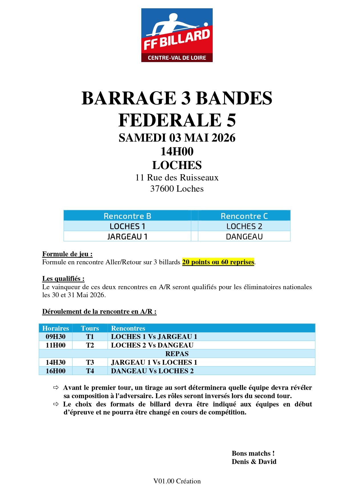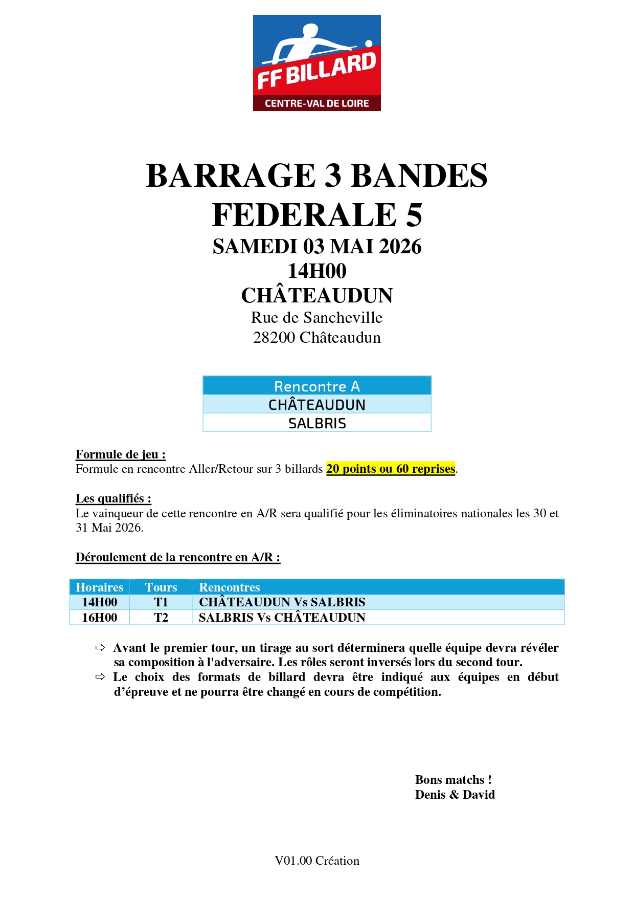 Veuillez trouver ci-joint la convocation du barrage 3 Bandes Fédérale 5 du 03 mai 2026