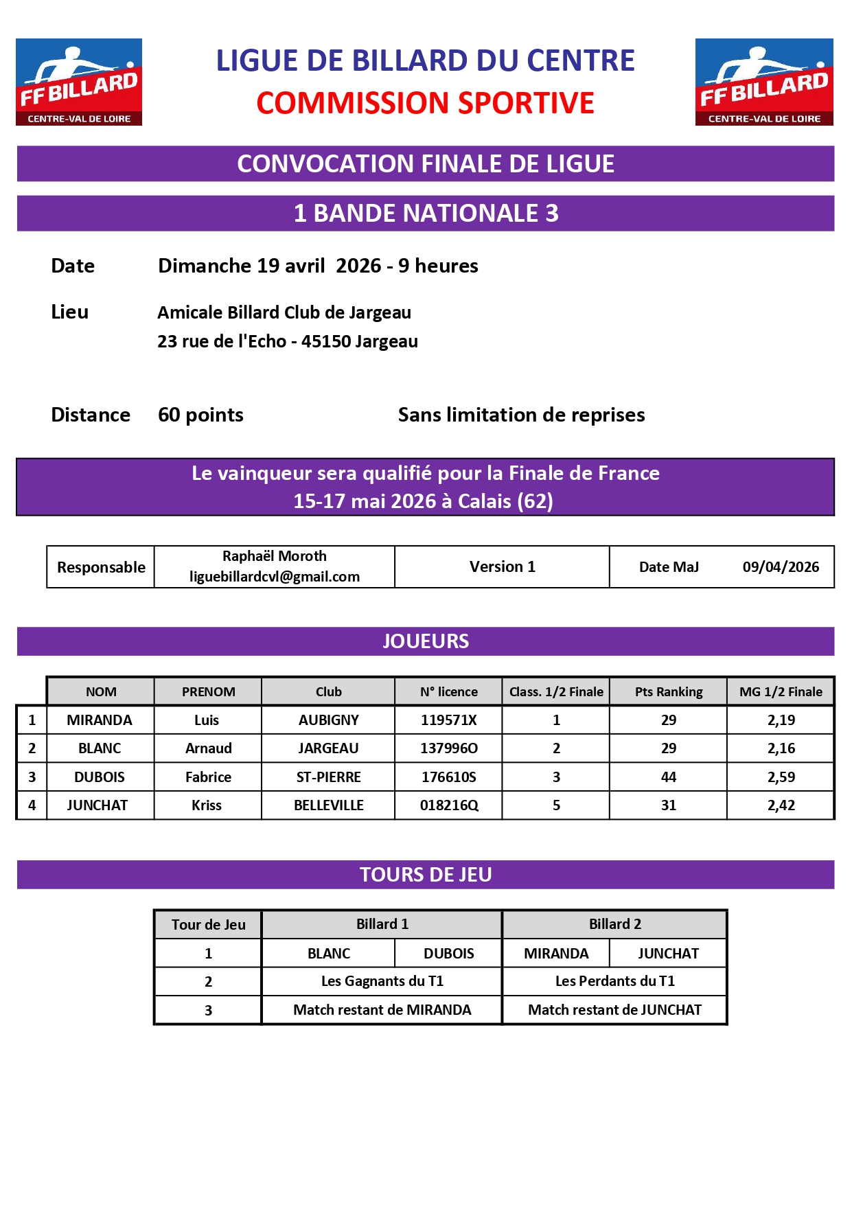 Veuillez trouver ci-joint la convocation pour la Finale 1 Bande N3 du 19 Avril 2026.|