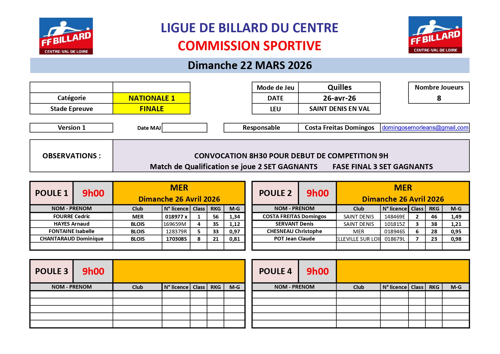 Veuillez trouver ci-joint la convocation du T5 5 Quilles N1 du 26 avril 2026. |