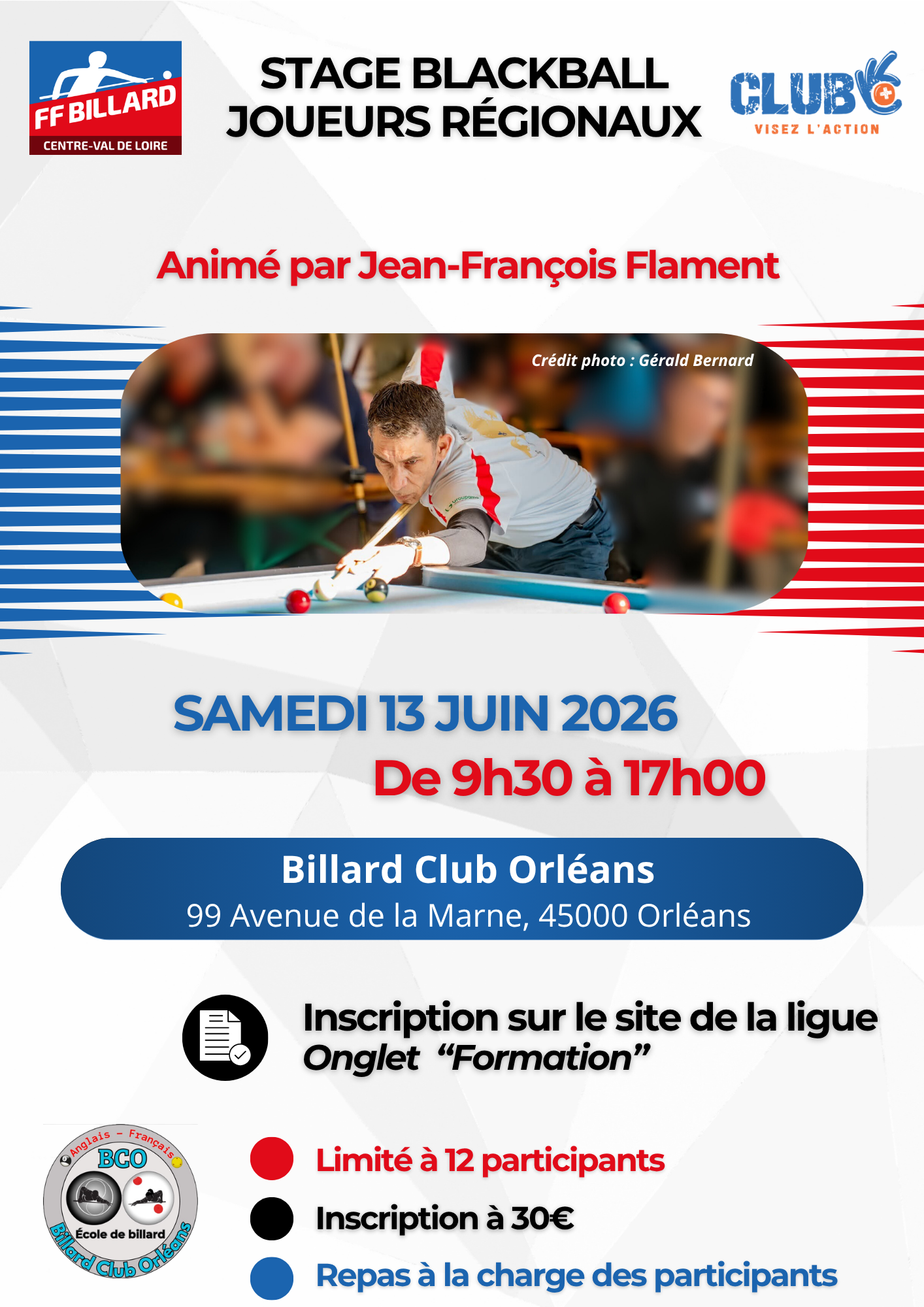 La formation se déroulera le 13 juin 2026 au Billard Club Orléans