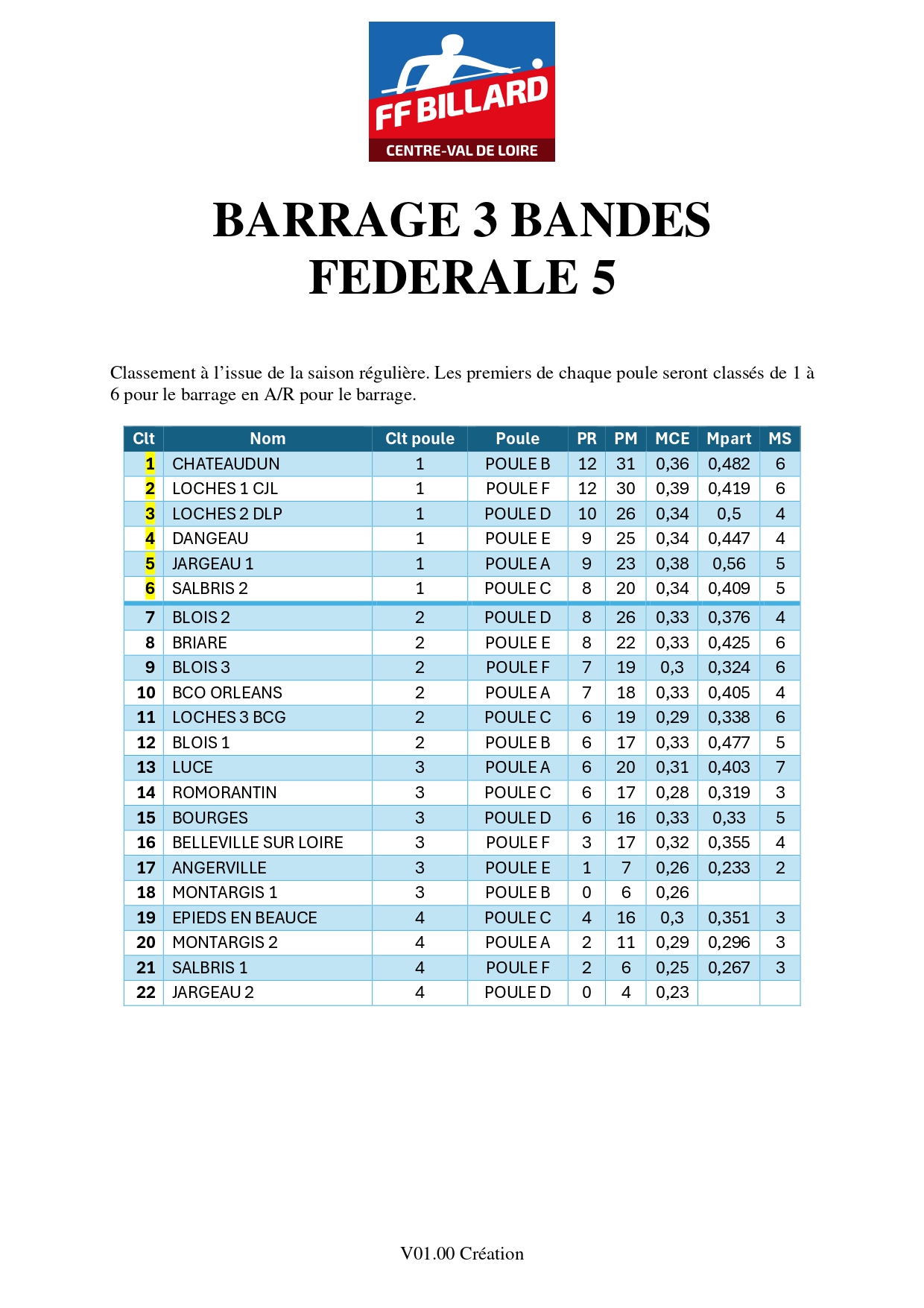 Veuillez trouver ci-joint la convocation du barrage 3 Bandes Fédérale 5 du 03 mai 2026