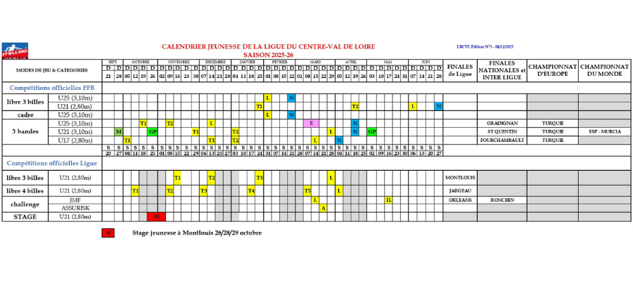 Le calendrier sportif carambole 2025-2026 a été mis à jour.
